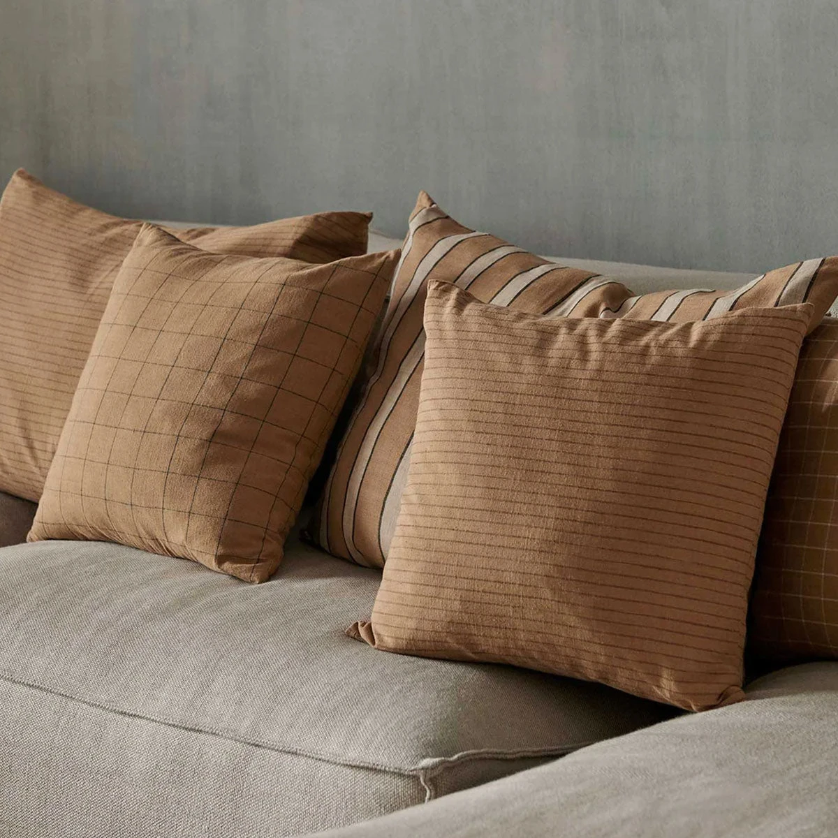 Brown Cotton Cushion with lines pattern by ferm LIVING