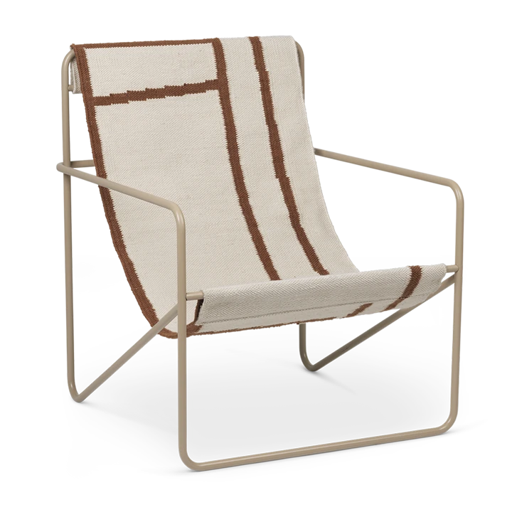 A modernist chair with a graceful profile, the Desert Chair is crafted from a tubular powder-coated steel frame, holding an interchangeable seat hand-woven from 100% PET yarn made from recycled post-consumer plastic.