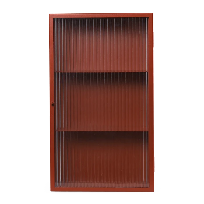 The Haze Wall Cabinet is a practical wall-mounted cabinet for storing smaller items. The powder-coated steel frame is paired with elegant reeded glass panels and door, and is the ideal solution for storing glasses in the kitchen or beauty essentials in the bathroom.
