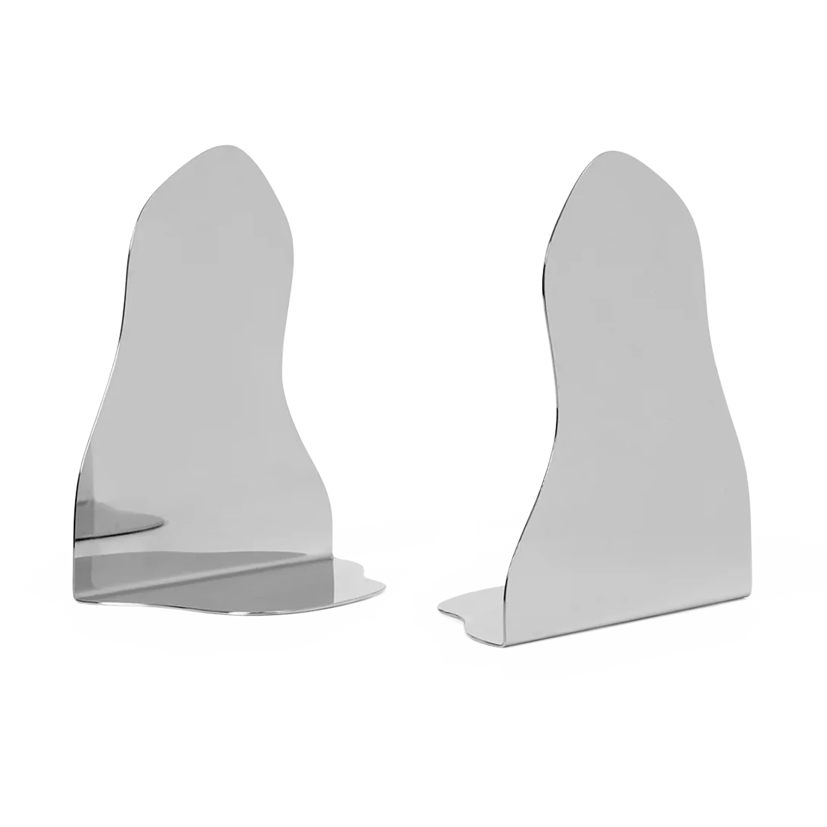 Reminiscent of small, calm puddles, the Pond Bookend brightens up the home library with its fluid shape and mirrored surface. The Pond Bookend is a part of the Pond Collection, where organic forms define the expression of familiar design pieces. Made of a bent stainless steel sheet with a mirror finish, the Pond Bookend subtly assists your books and magazines on the bookshelf.