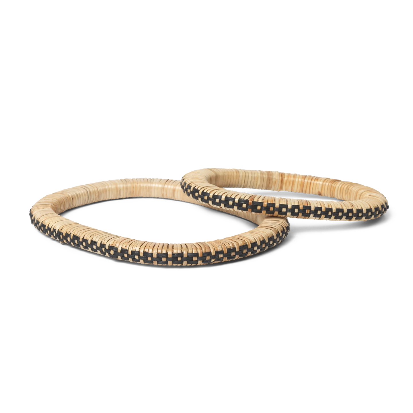 Crafted from braided rattan with interwoven black detailing, the Weave Trivets will protect your dining table from hot pans and pots while also adding texture and tactility to the setting.