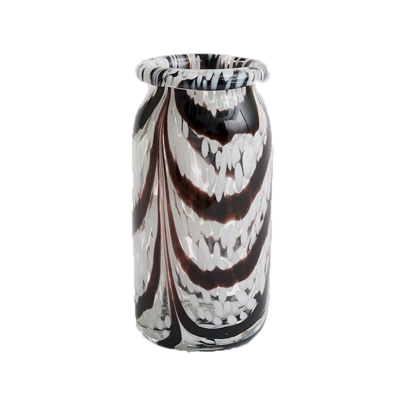 Handmade using a special glassblowing technique that involves multiple layers of coloured glass dots, the Splash Vase features a unique swirled pattern.